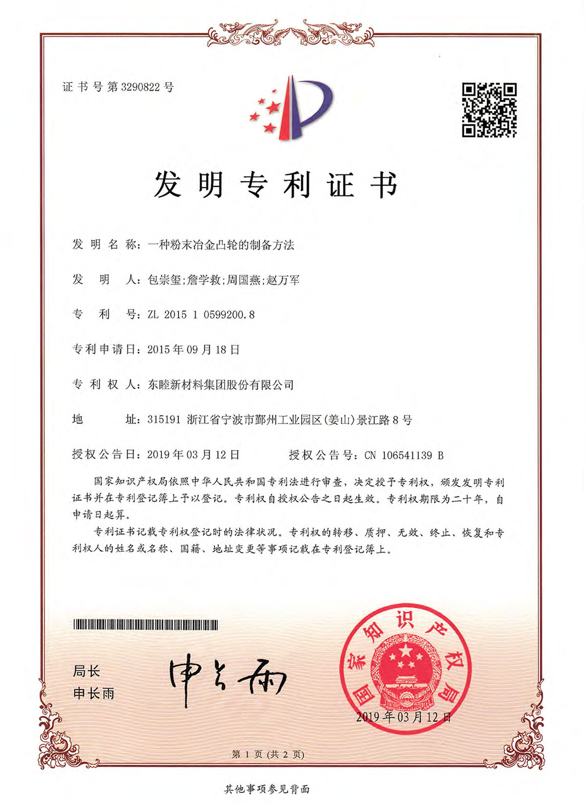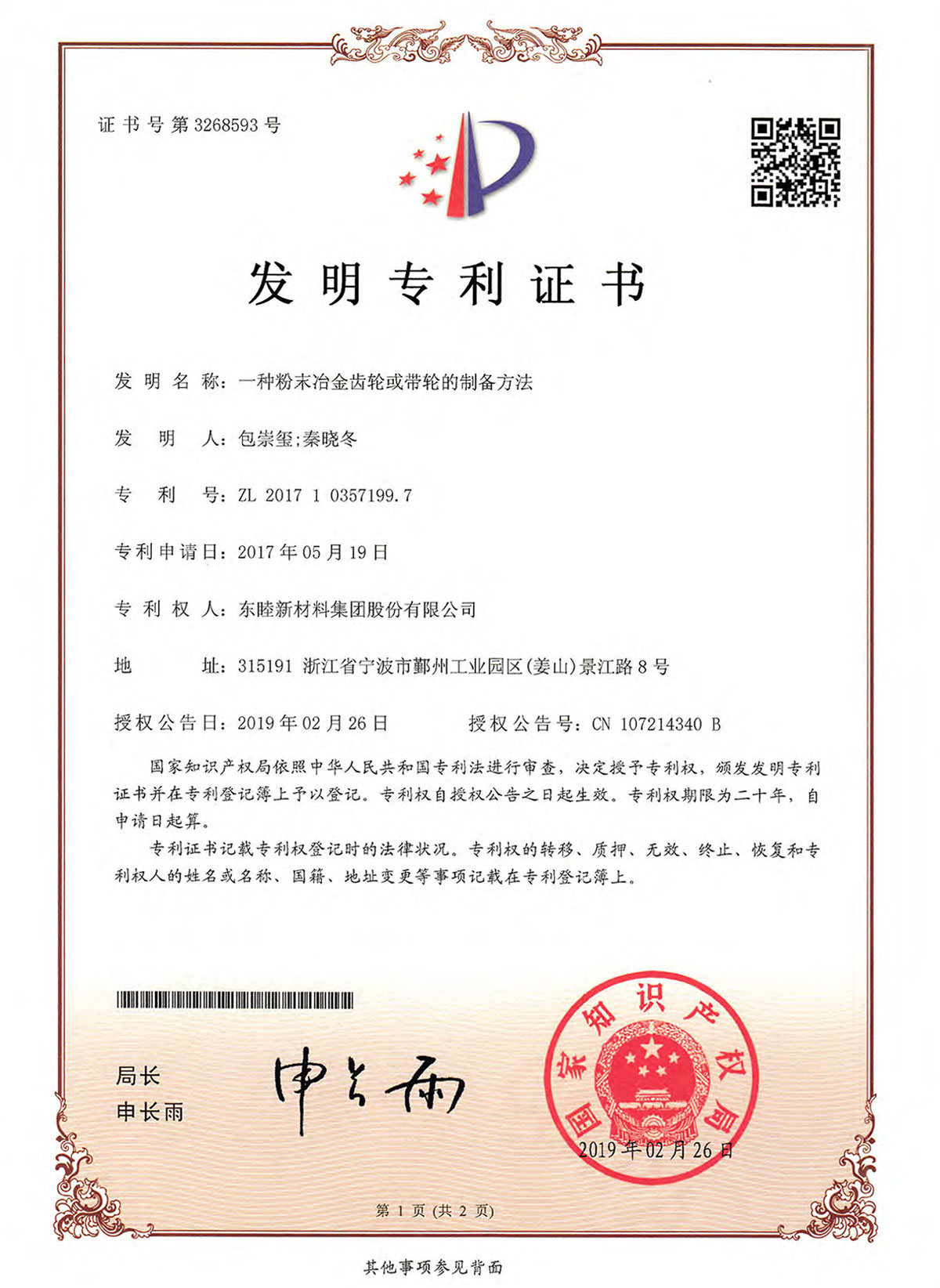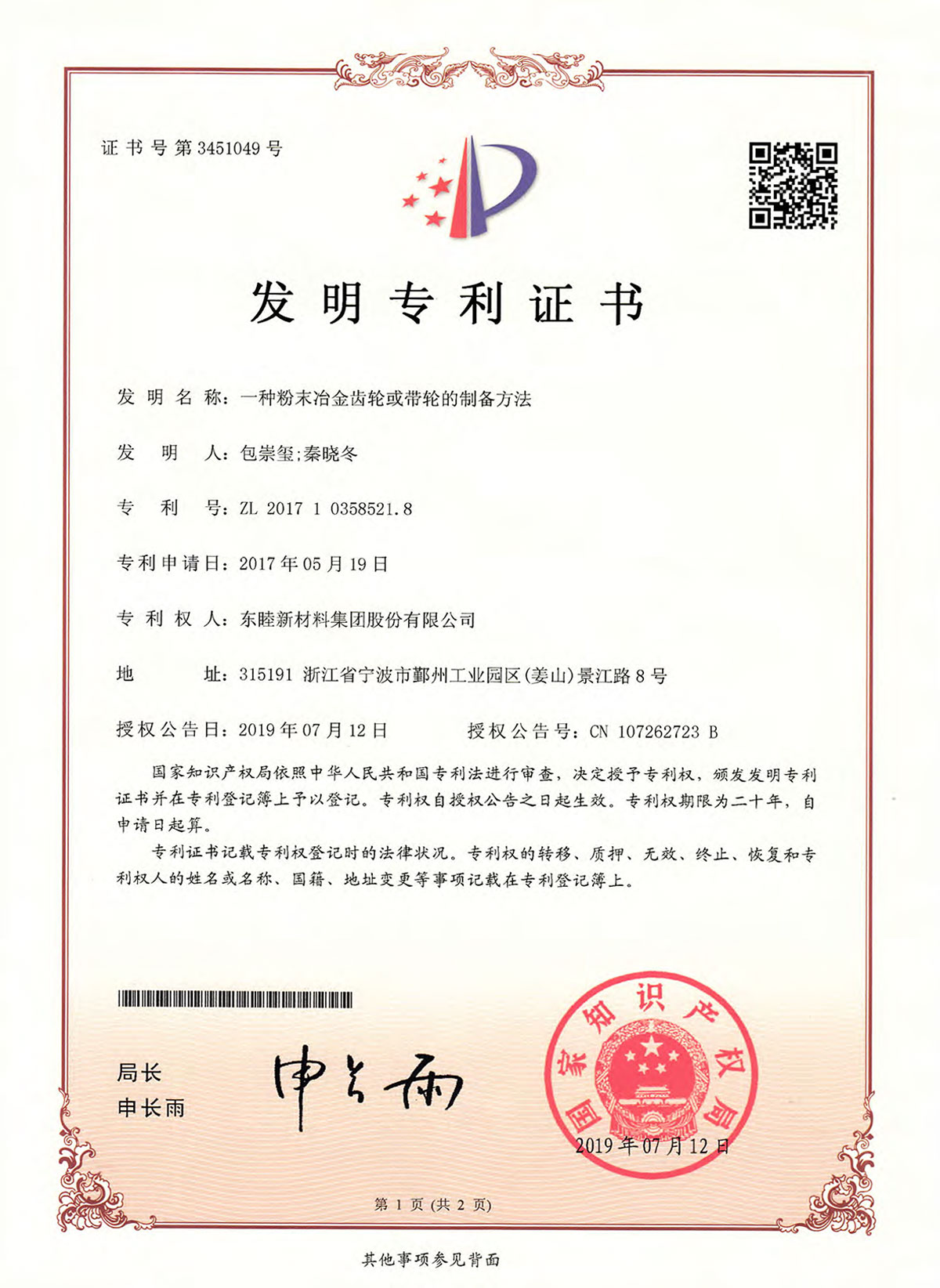 华东五省一市粉末冶金大会贡献奖(EPS电子转向系统斜带轮)