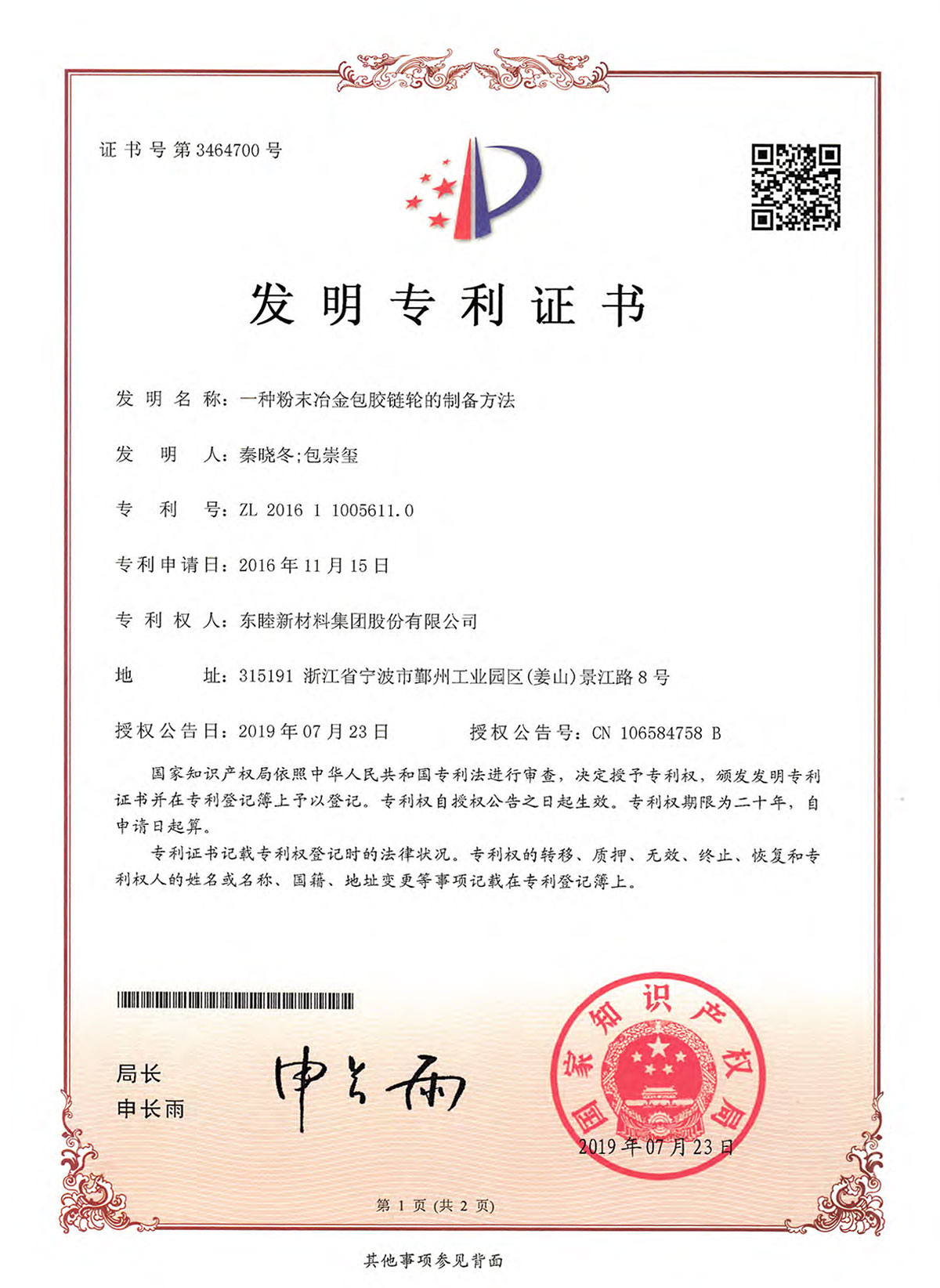 华东五省一市粉末冶金大会贡献奖(组合链轮)
