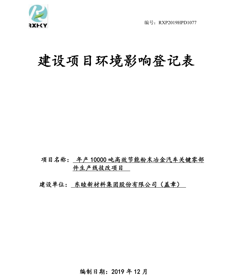 17c吃瓜网 有限公司年产10000吨高效节能粉末冶金汽车关键零部件生产线技改项目
